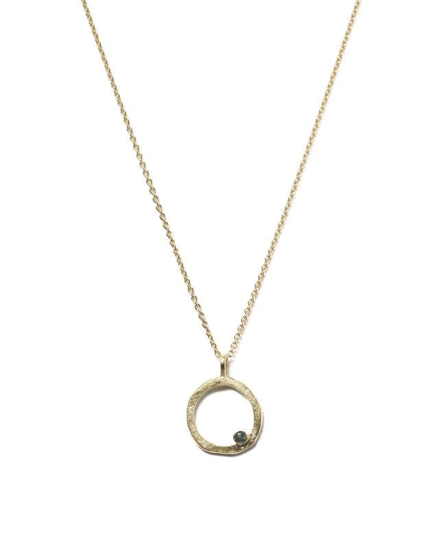 Cirkelhanger met toermalijn 14krt geelgouden hanger met organische cirkel en gezet met een toermalijn van 2,5mm. Uiteraard kunnen we hierbij een kettinkje verzorgen. Verkocht
